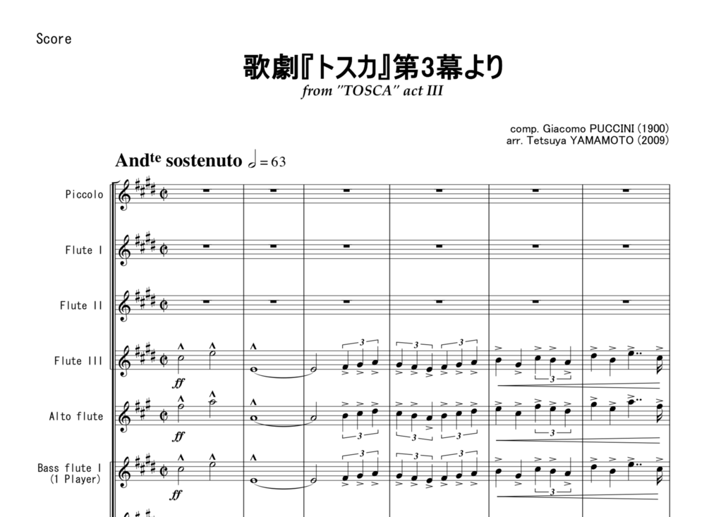 歌劇「トスカ」第3幕より ―フルートアンサンブルのための - スコア&パート譜